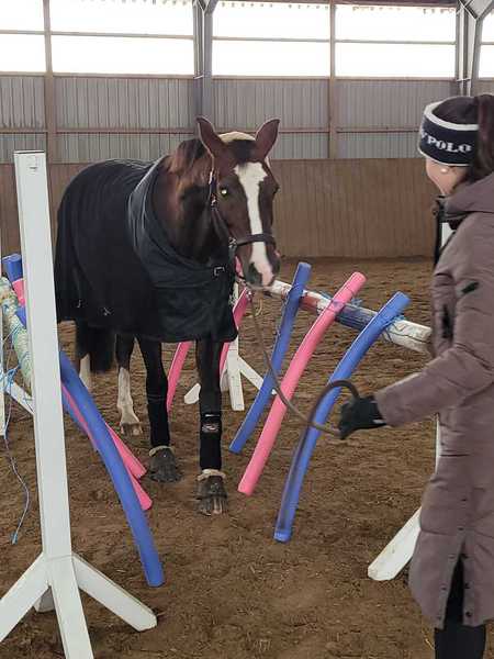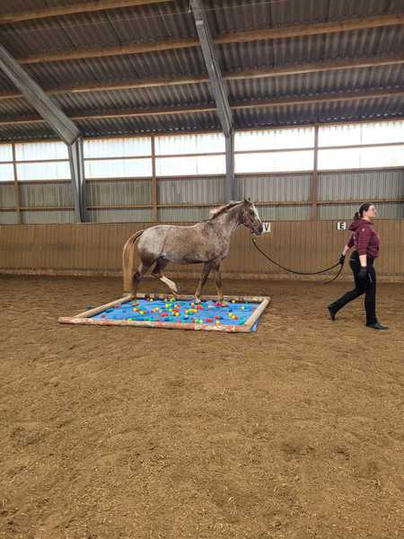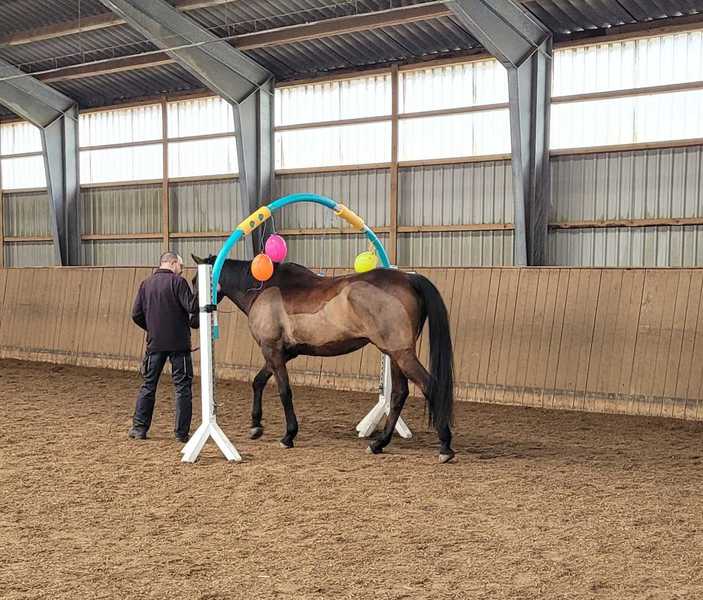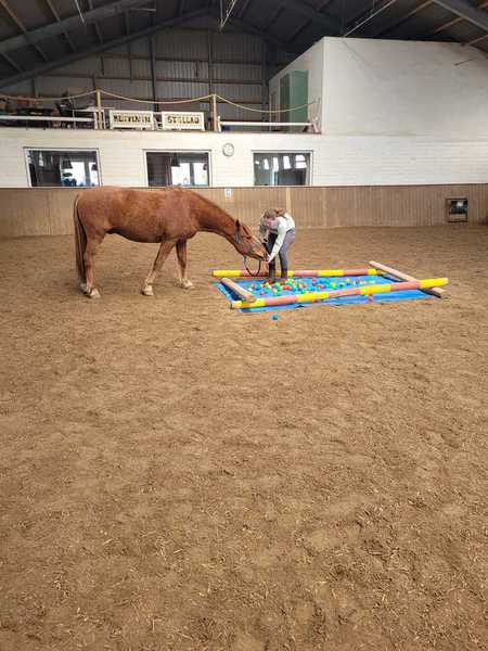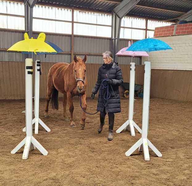 Am 14.02, 28.02 und 28.03.2026 habe ich für die Stallgemeinschaft wieder Gelassenheitstraining mit mehreren Stationen organisiert.